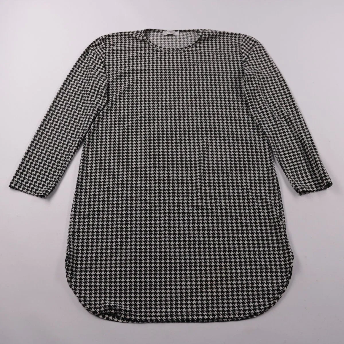 Повседневное платье Fashion прямого силуэта с длинным рукавом и круглым вырезом, в черно-белом принте «гусиная лапка». Подойдёт для офиса и на каждый день, хорошо смотрится с плотными колготками и ботинками/лоферами. Практичный плюс — универсальный принт легко сочетать с однотонной верхней одеждой и аксессуарами.