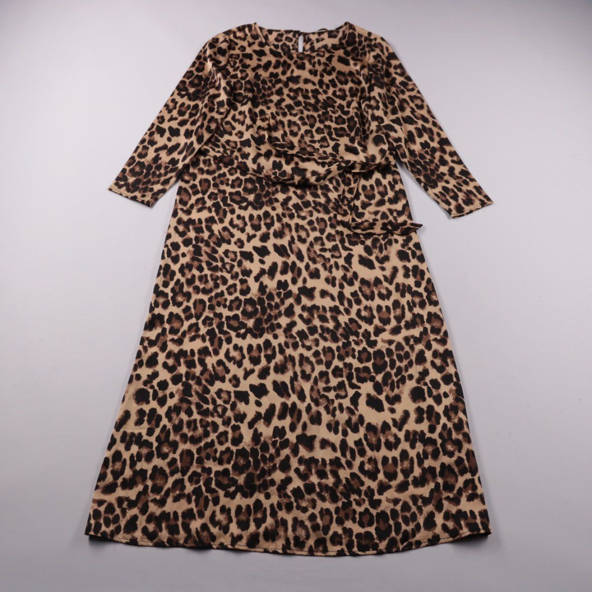 Повседневное платье Only с леопардовым принтом, длина миди, рукава 3/4 и небольшой вырез сзади. Подойдёт для офиса и на каждый день, легко сочетается с однотонными туфлями или ботильонами. Практичный плюс — материал из полиэстера почти не мнётся и быстро сохнет.