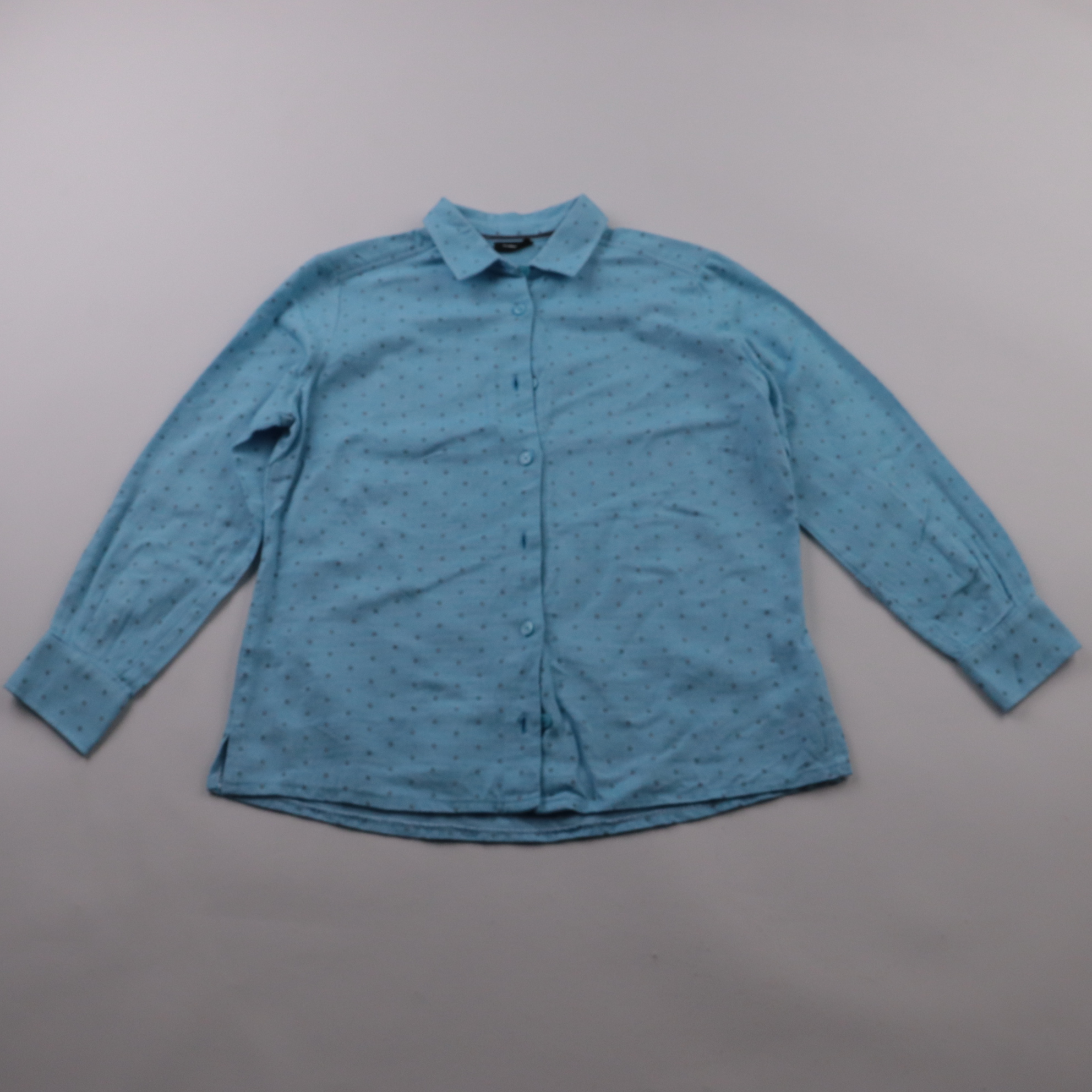 голубой с мелким тёмным принтом