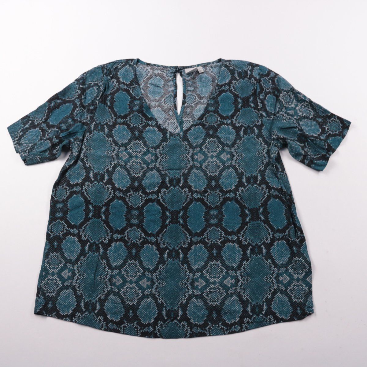 Женская блузка ICHI с коротким рукавом и V-образным вырезом с небольшим разрезом. Подойдёт для повседневных образов и офиса с базовыми брюками или джинсами благодаря спокойному змеиным принту. Лёгкая вискоза приятна к телу и хорошо драпируется.