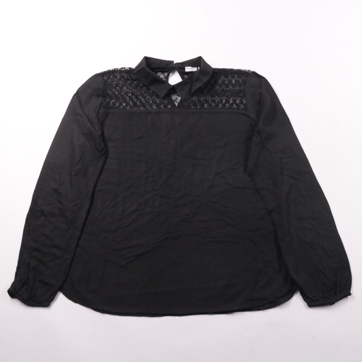 Женская блузка Jacqueline de Yong чёрного цвета с отложным воротником и кружевной вставкой на кокетке. Подойдёт для офиса и вечерних образов, хорошо смотрится с брюками и юбками. Лёгкий материал и длинный рукав делают её удобной для носки в помещении и в межсезонье.