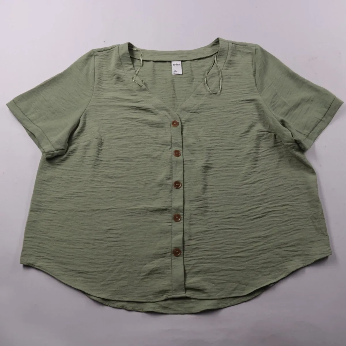 Блузка Anko свободного кроя из фактурной ткани с V-вырезом и застёжкой на пуговицы. Подойдёт для повседневных летних образов и офиса в сочетании с брюками или джинсами. Полиэстер практически не мнётся и быстро сохнет.