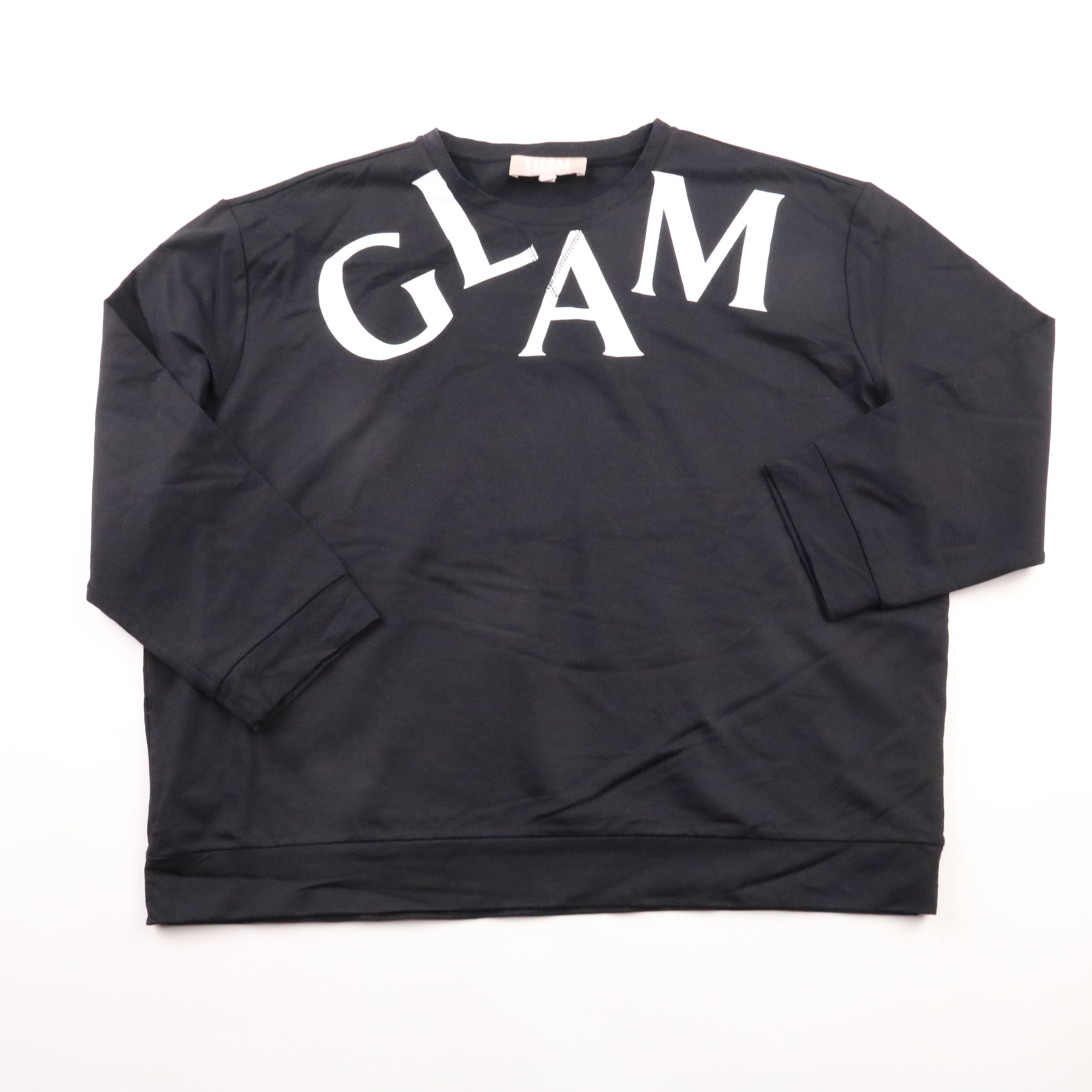 Свитшот THOM BY THOMAS RATH чёрного цвета с крупным контрастным принтом GLAM спереди. Подойдёт для повседневных образов и комфортных прогулок в прохладную погоду. Мягкая ткань с модалом и эластаном приятна к телу и хорошо тянется.