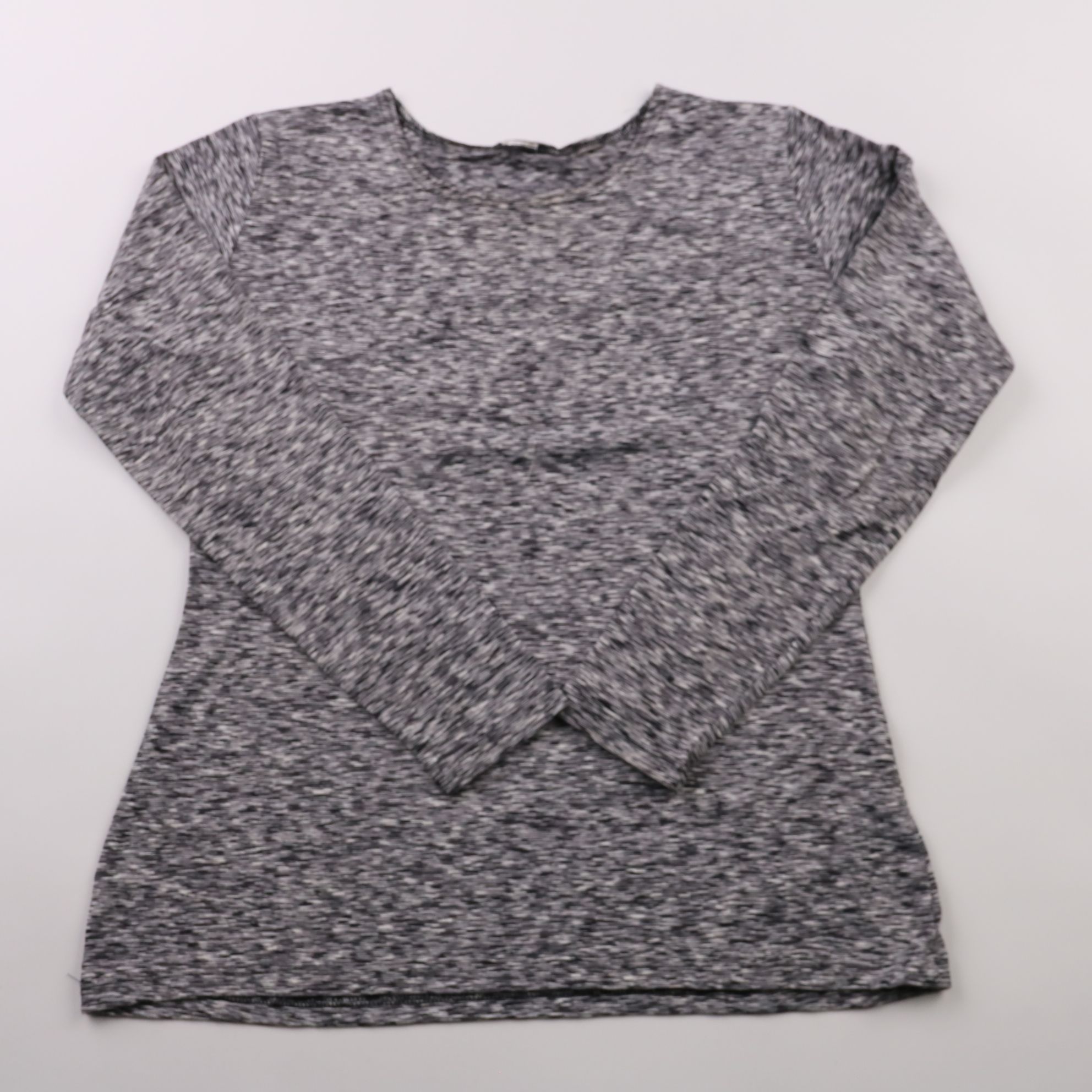 Женский лонгслив меланжевого серого цвета с круглым вырезом и длинным рукавом. Подойдёт для повседневных образов и как базовый слой в прохладную погоду. Ткань мягкая и практичная, легко сочетается с джинсами и спортивными брюками.