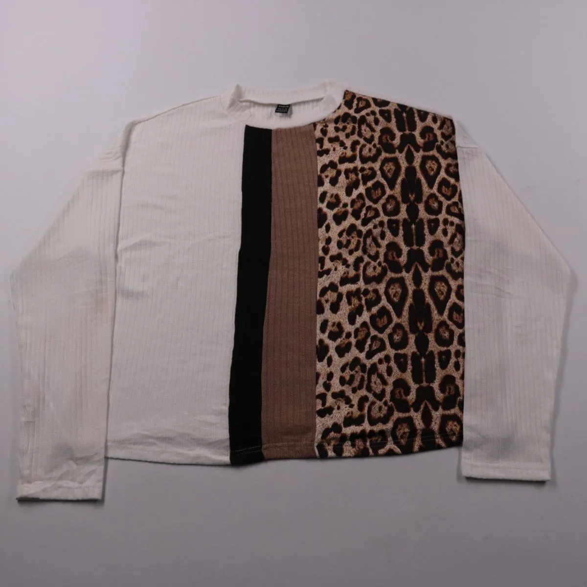 Женский лонгслив Shein из фактурного трикотажа в стиле color-block с леопардовой вставкой спереди. Подойдёт для повседневных образов на работу или прогулку, хорошо сочетается с джинсами и однотонными брюками. Материал тянется и комфортно садится по фигуре.