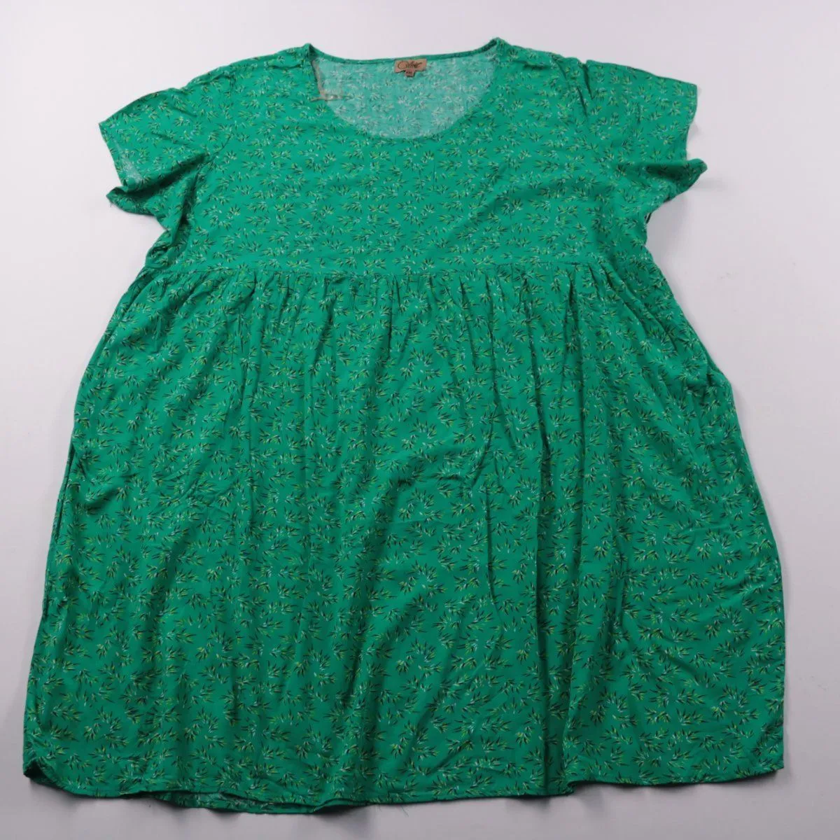Женское платье Cline зелёного цвета с мелким принтом и коротким рукавом, свободный силуэт с завышенной линией талии. Подойдёт для лета и тёплой погоды, на каждый день или в отпуск. Вискоза лёгкая и дышащая, быстро сохнет после стирки.