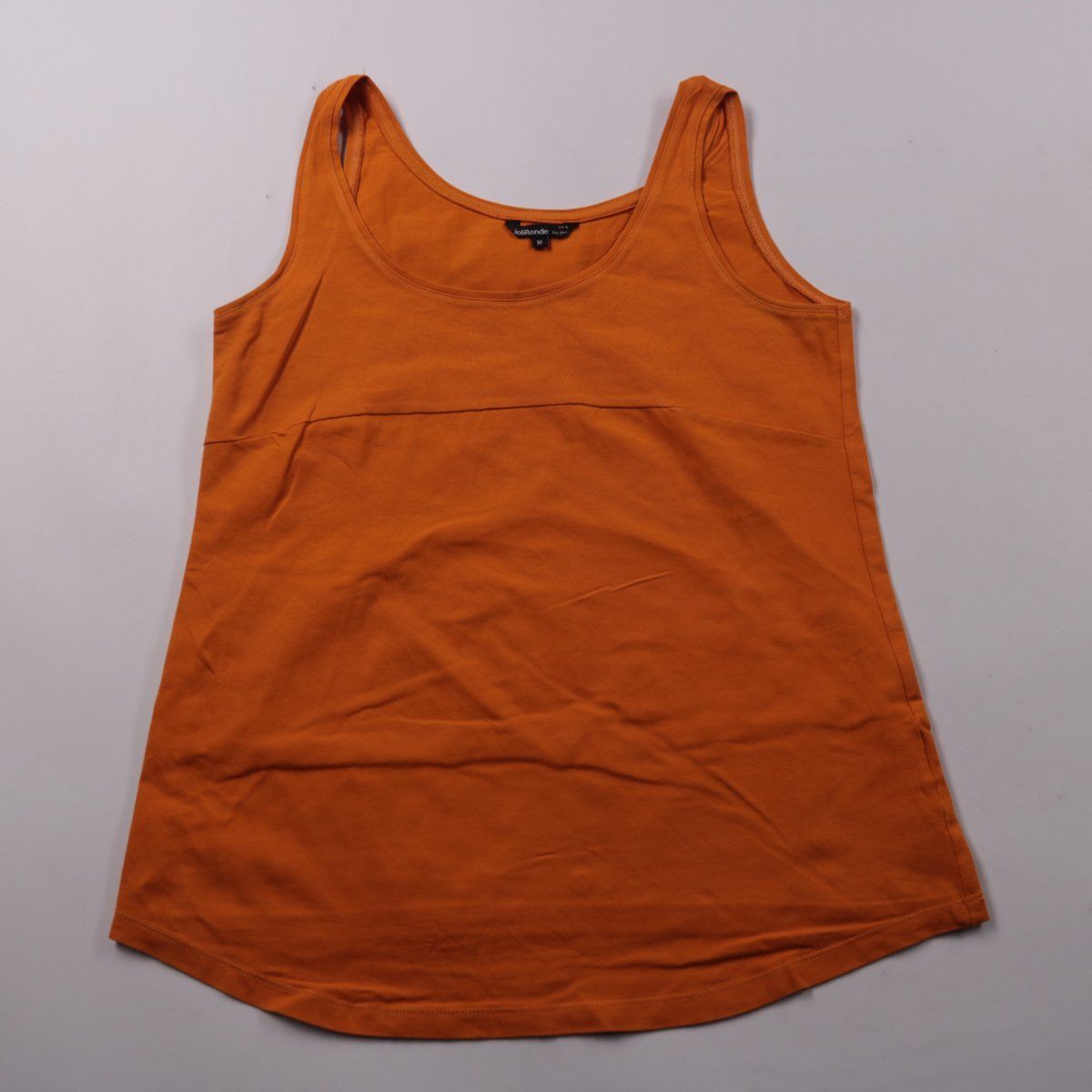Женская майка JBC (линия JoliRonde), однотонная оранжевая с круглым вырезом и широкими бретелями. Подойдёт для лета, отдыха и повседневных образов. Хлопок с небольшим добавлением эластана комфортно тянется и хорошо сидит.