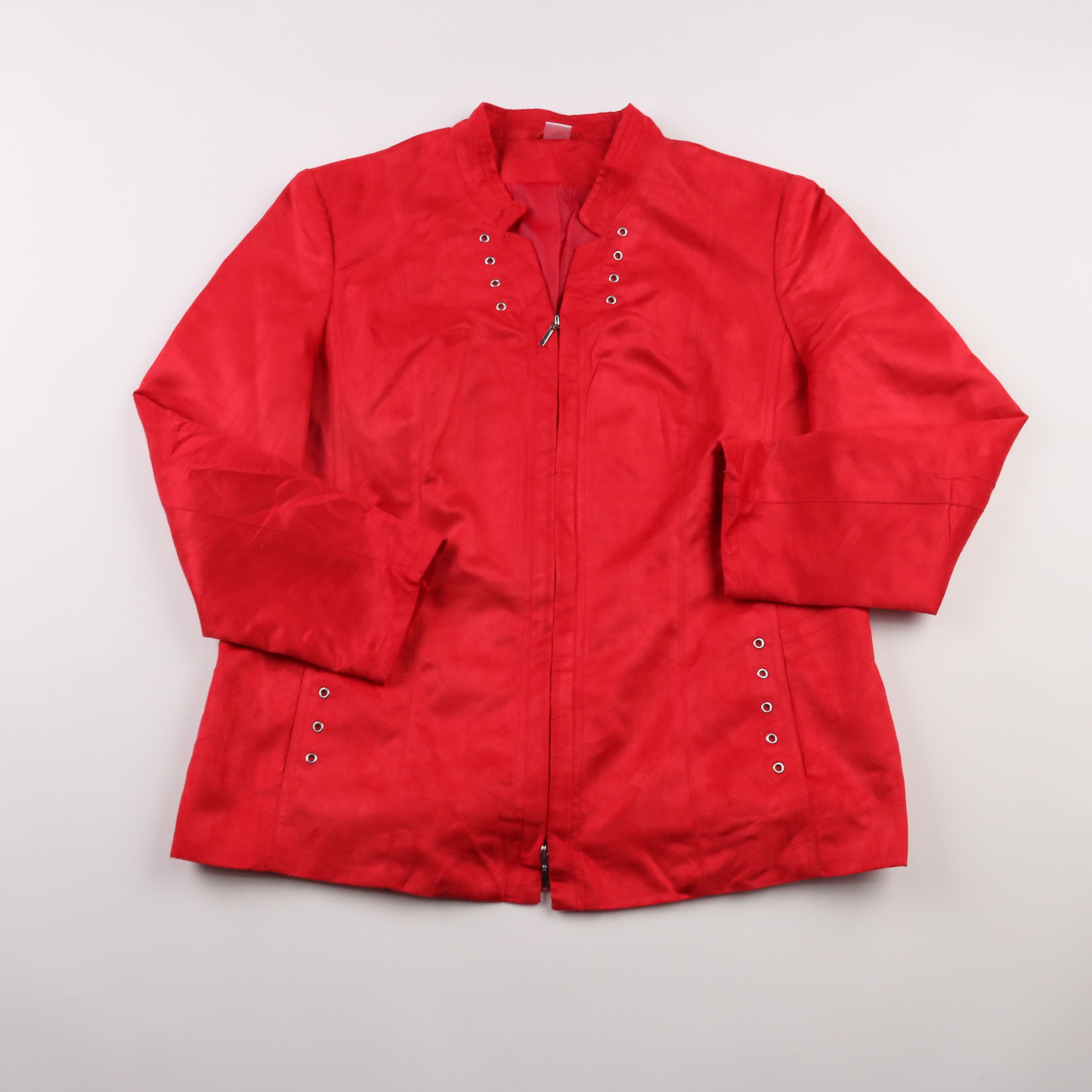 Женская лёгкая куртка D.N.L. ярко-красного цвета, на молнии, с декоративными люверсами. Подойдёт для прогулок и повседневной носки в демисезон, хорошо сочетается с джинсами и базовыми вещами. Практичный плюс — ткань и подкладка из полиэстера, легко уха...