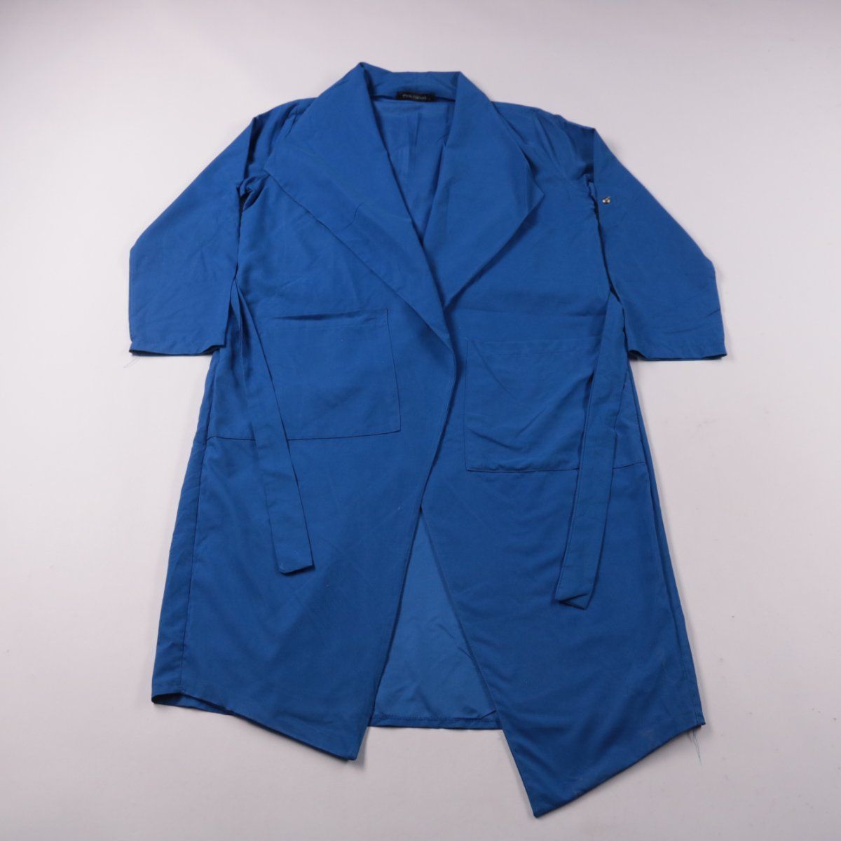 Женский плащ Makarno синего цвета, прямого силуэта с широкими лацканами и поясом. Подойдёт для весны и осени, удобно носить с повседневными и офисными образами. Пояс помогает регулировать посадку по талии.