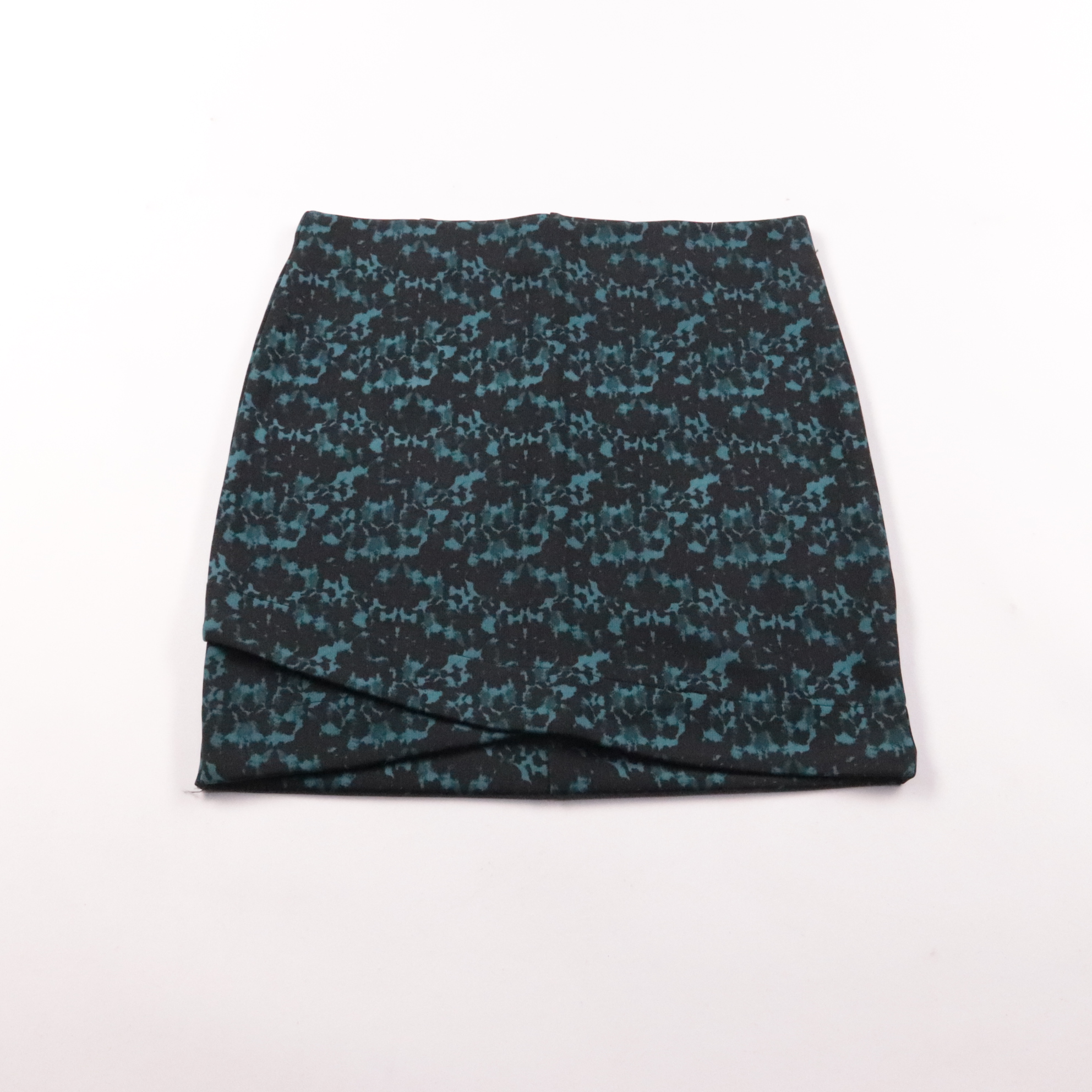 Юбка H&M с абстрактным принтом в чёрно-бирюзовой гамме и эластичной посадкой. Подойдёт для повседневных образов и офиса с базовой блузой или свитером. Материал тянется и почти не мнётся, поэтому удобно носить и легко ухаживать.