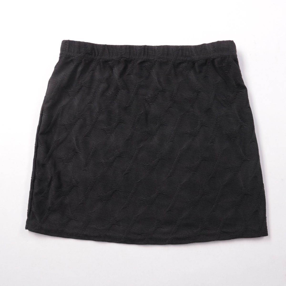Чёрная короткая юбка PrettyLittleThing с фактурным жаккардовым узором и эластичным поясом. Подойдёт для повседневных образов и вечерних выходов с топом или блузой. Тянущаяся ткань комфортно садится по фигуре.