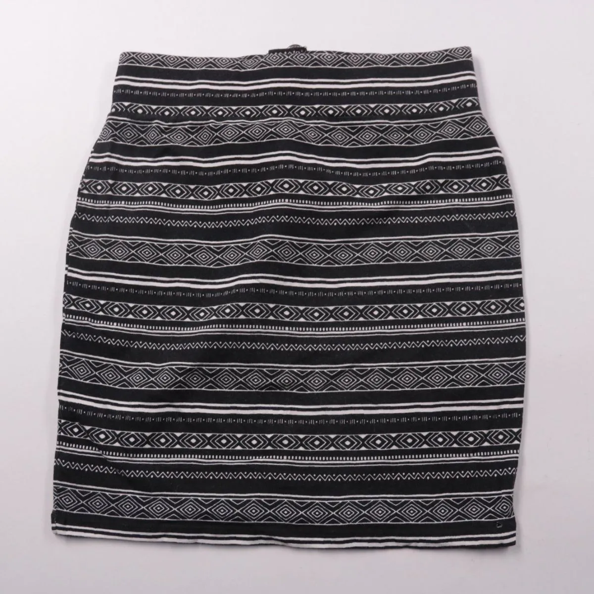Юбка New Look с геометрическим орнаментом в черно-белых полосах и застёжкой-молнией сзади. Подойдёт для повседневных образов и офиса с однотонным верхом. Трикотаж с добавлением эластана комфортно тянется и не сковывает движения.