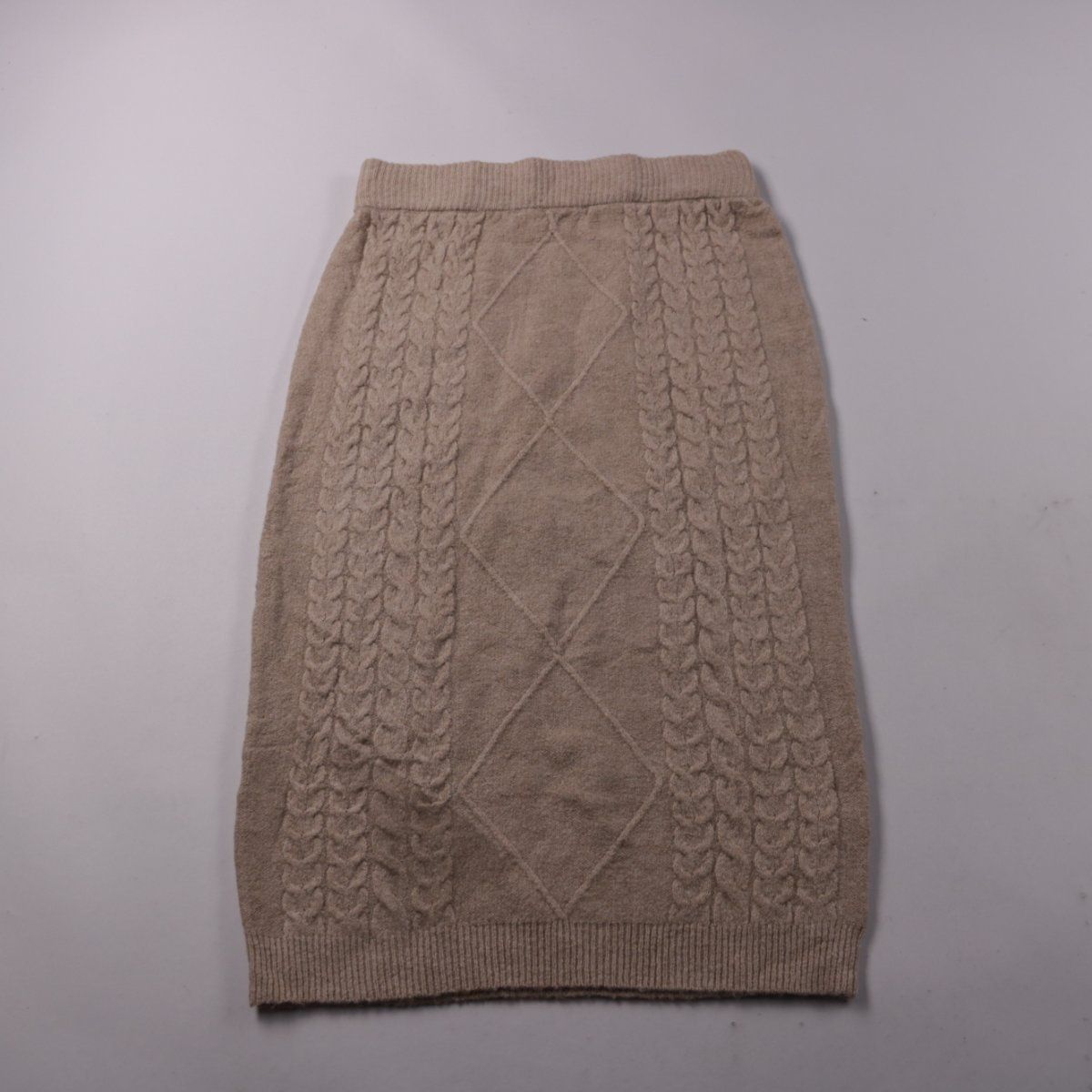 Трикотажная юбка NA-KD бежевого цвета, модель-карандаш с рельефным узором «косы» и эластичным поясом. Подойдёт для повседневных образов в прохладную погоду. Практична тем, что хорошо тянется и комфортно садится по фигуре.